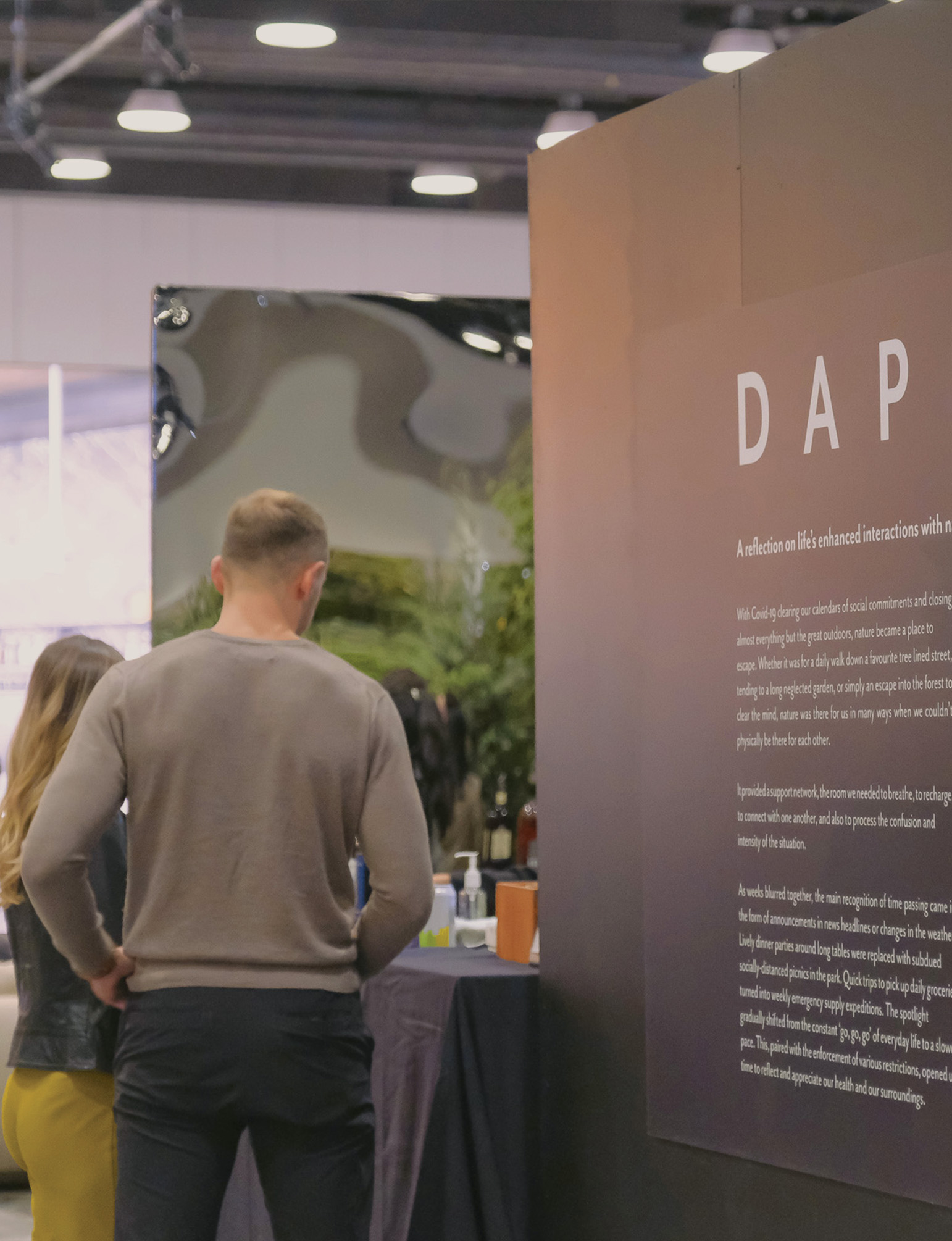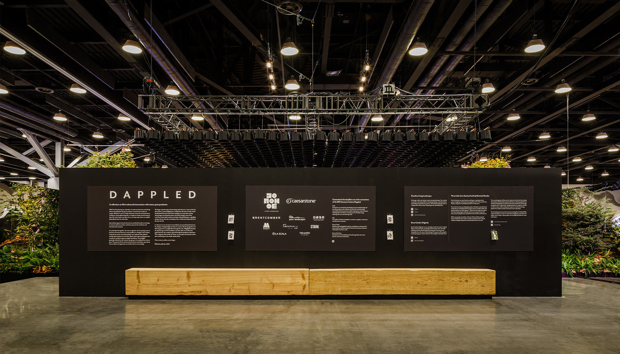 Designed as the central bar feature for the IDS Vancouver show in 2022, Dappled was a reflection on life’s enhanced interactions with nature post pandemic. With Covid-19 clearing our calendars, and closing almost everything but the great outdoors, nature became a place to escape.