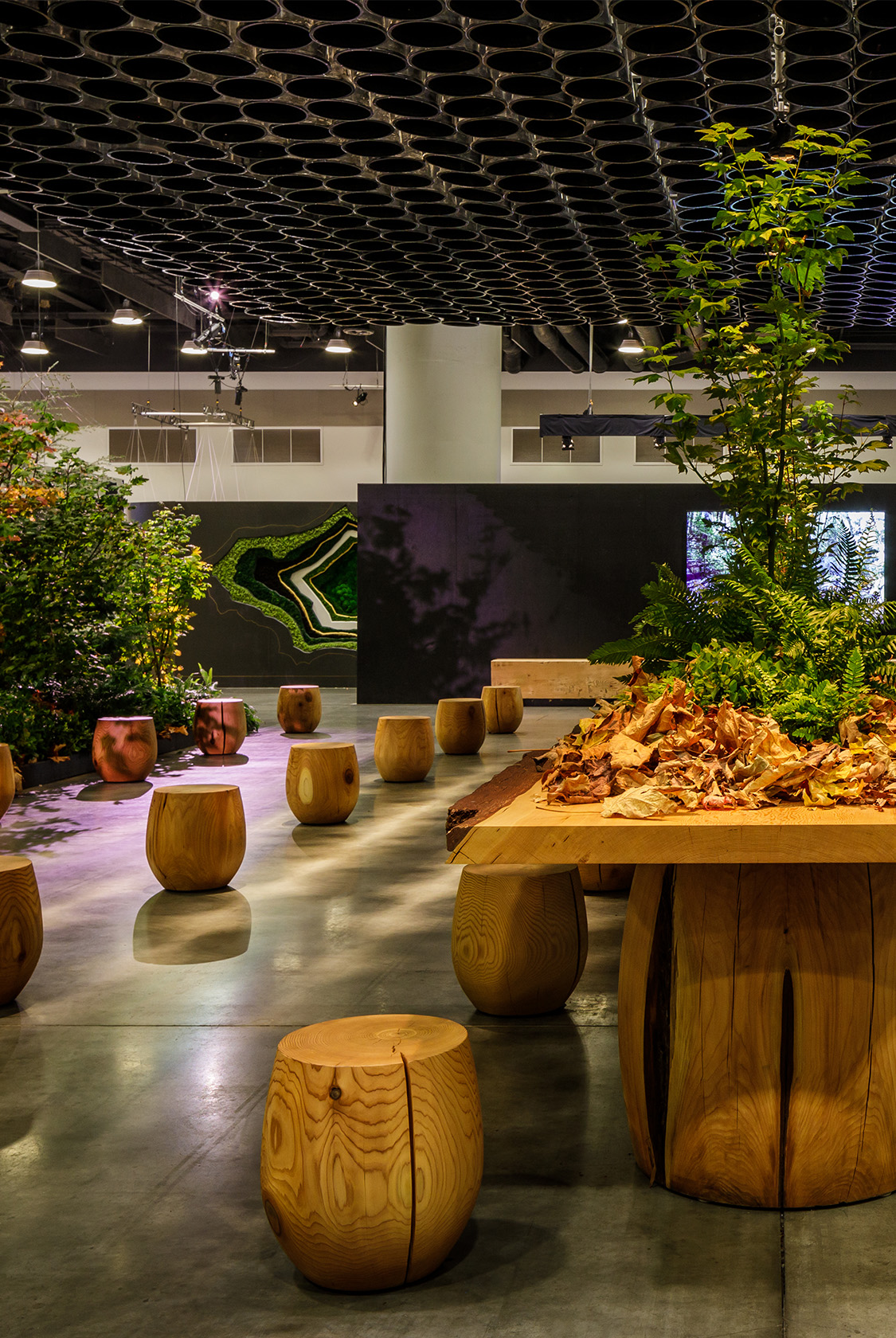 Designed as the central bar feature for the IDS Vancouver show in 2022, Dappled was a reflection on life’s enhanced interactions with nature post pandemic. With Covid-19 clearing our calendars, and closing almost everything but the great outdoors, nature became a place to escape.
