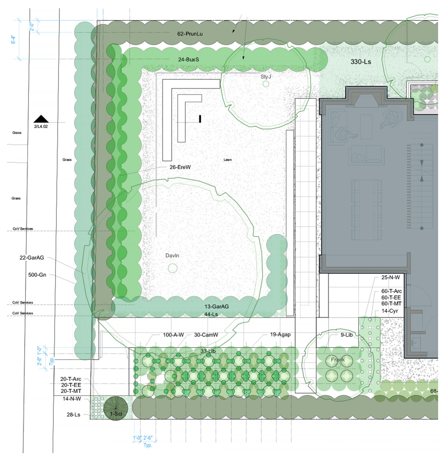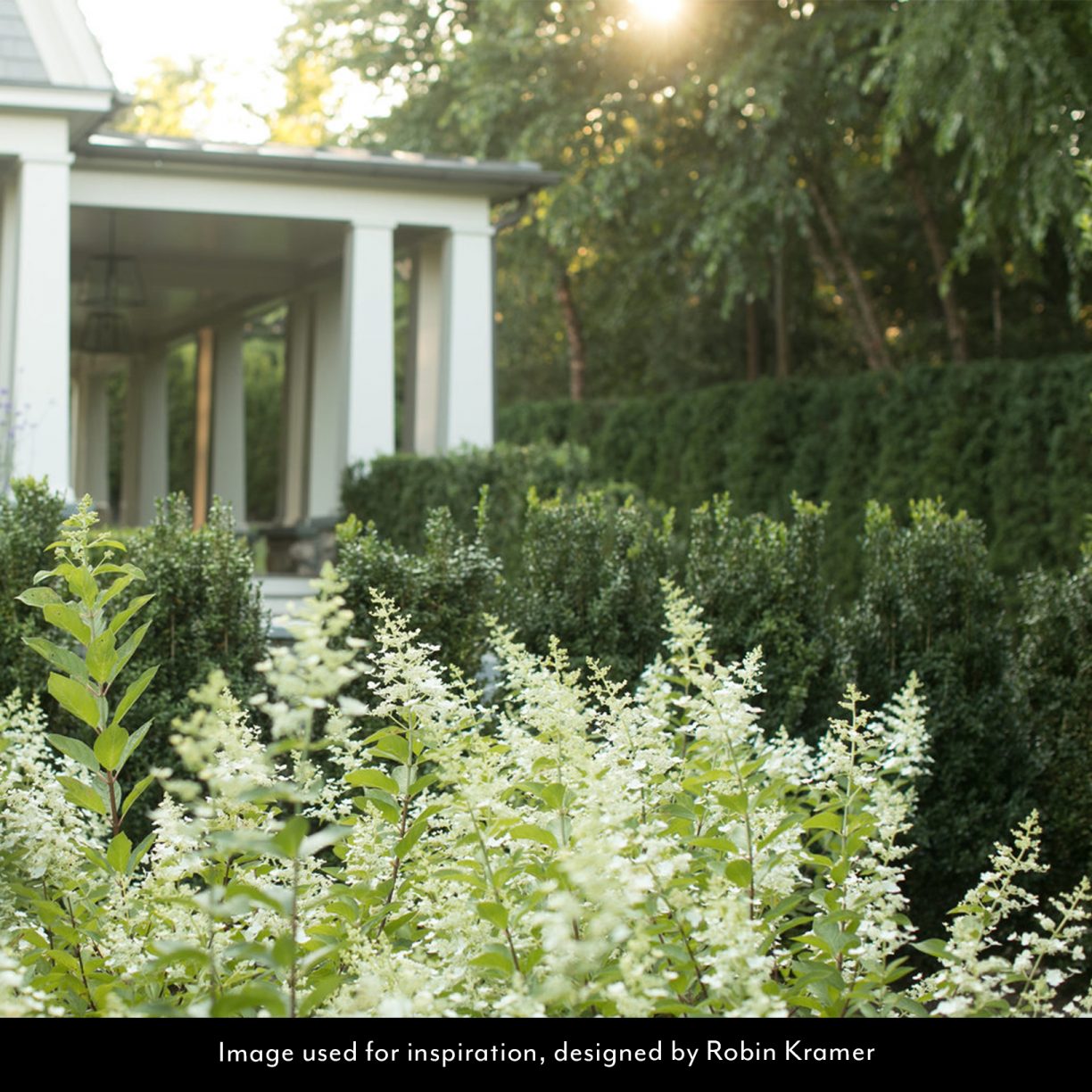 The landscape for this new stately contemporary home called for a neutral colour palette and sleek lines mixed with traditional planting. The secluded front yard is an optimal spot for quiet reflection, while the rear of the property encompasses abundant space for entertaining among continuously flowering white petals contrasting with vibrant green foliage.